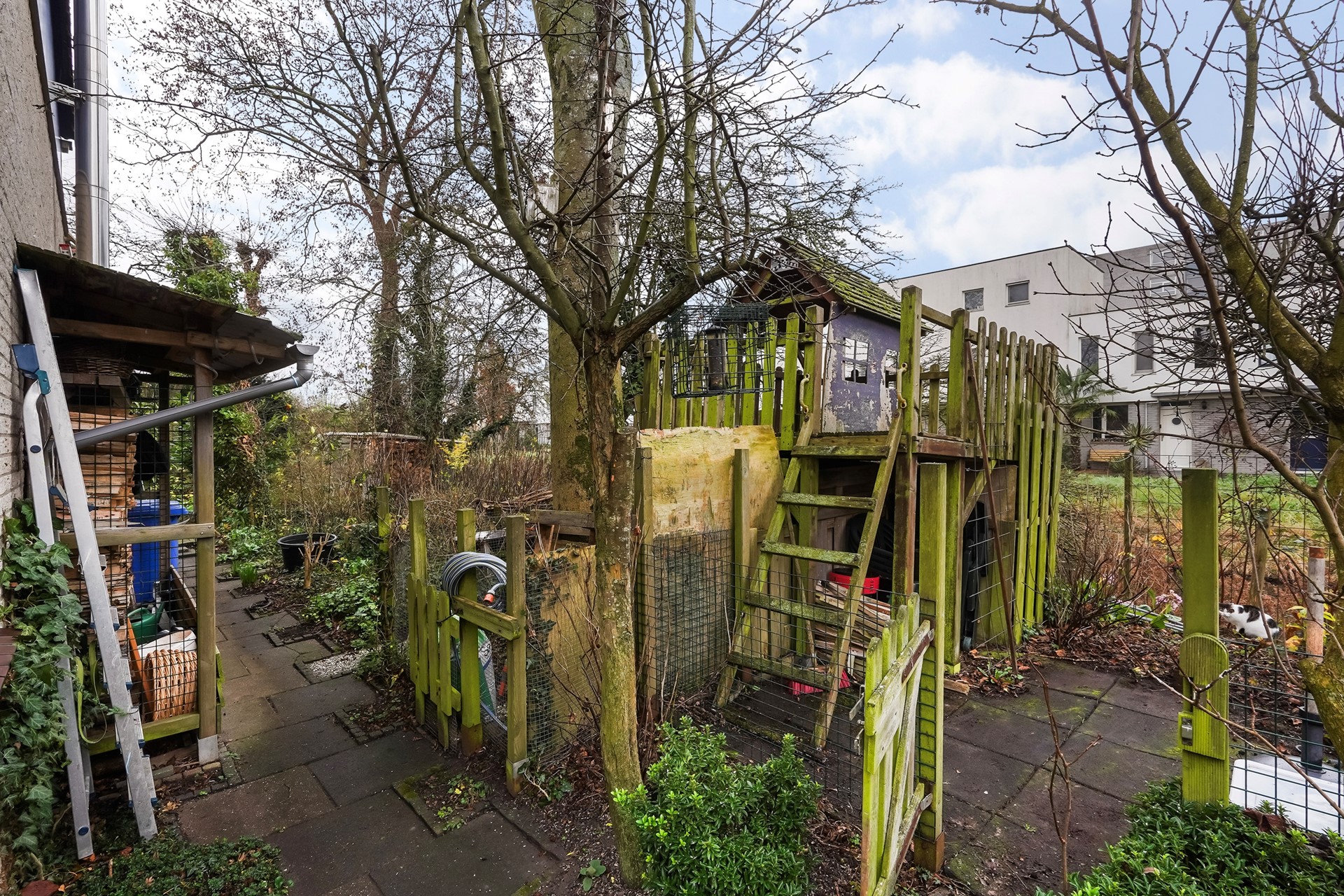 De tuin is een waar paradijs voor tuinliefhebbers en gezinnen, met volwassen (fruit)bomen en een speeltoestel voor kinderen. Hier geniet u van privacy, groen en ruimte – iets wat zeldzaam is op deze locatie.