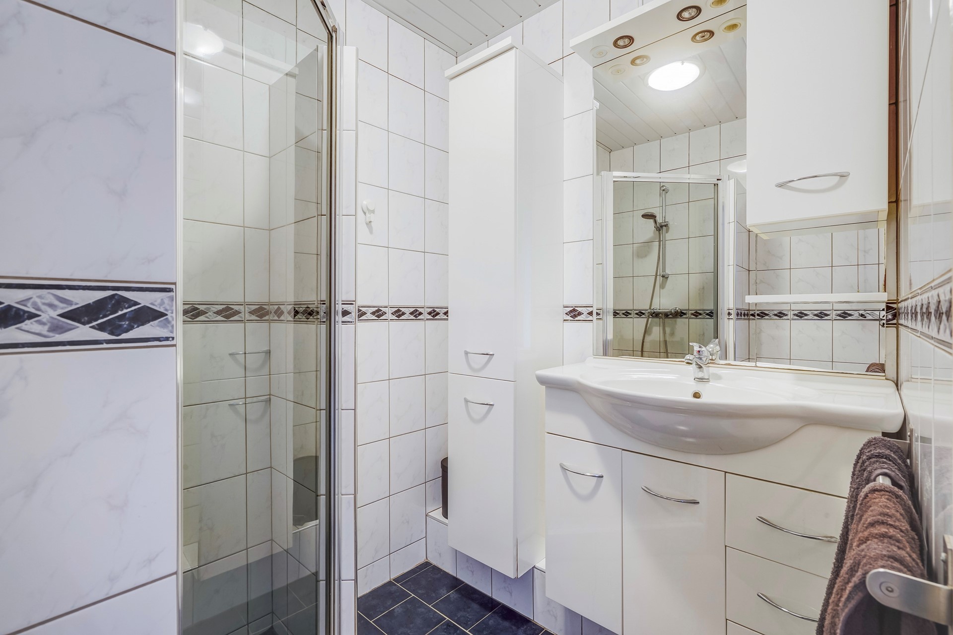• Nette badkamer met douchecabine en modern wastafelmeubel